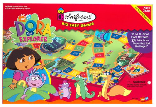 Dora the Explorer Big Easy Game reinforces important learning skills such as counting, color matching, critical thinking and decision-making as players make their way around the Big Easy Mat. Larger than a regular game board, the super-size play mat is perfect for young ones. Game includes a 26" x 36" Big Easy Mat, 44 Colorforms pieces, 4 character cards, one card tray, game spinner and instructions.